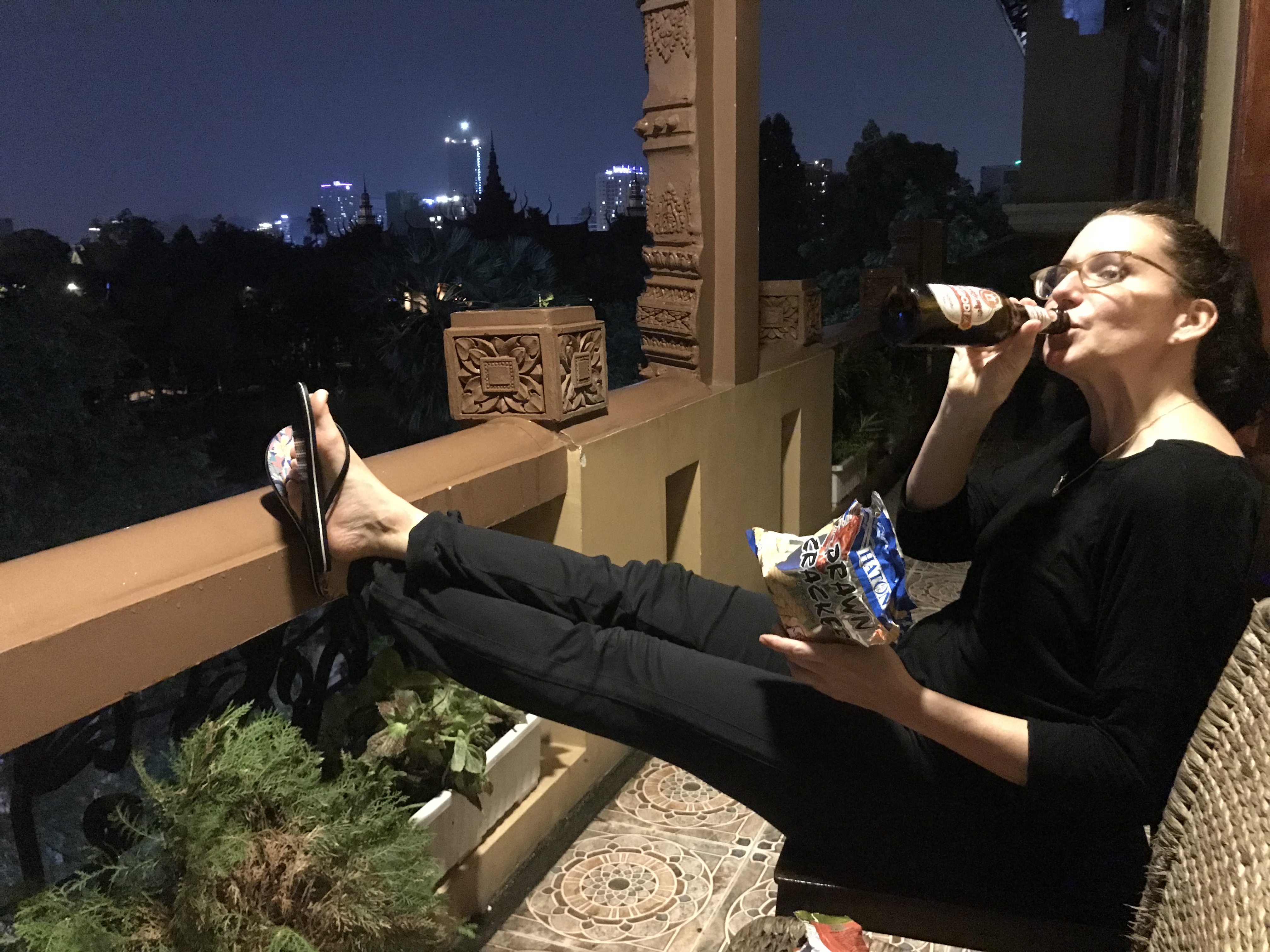 Wir kommen Abends in Phnom Penh an und erreichen unsere Bleibe kurz bevor es anfängt in Strömen zu regnen. Ein Späti um die Ecke versorgt uns noch mit einem gute Nacht Bier auf unserem Balkon.