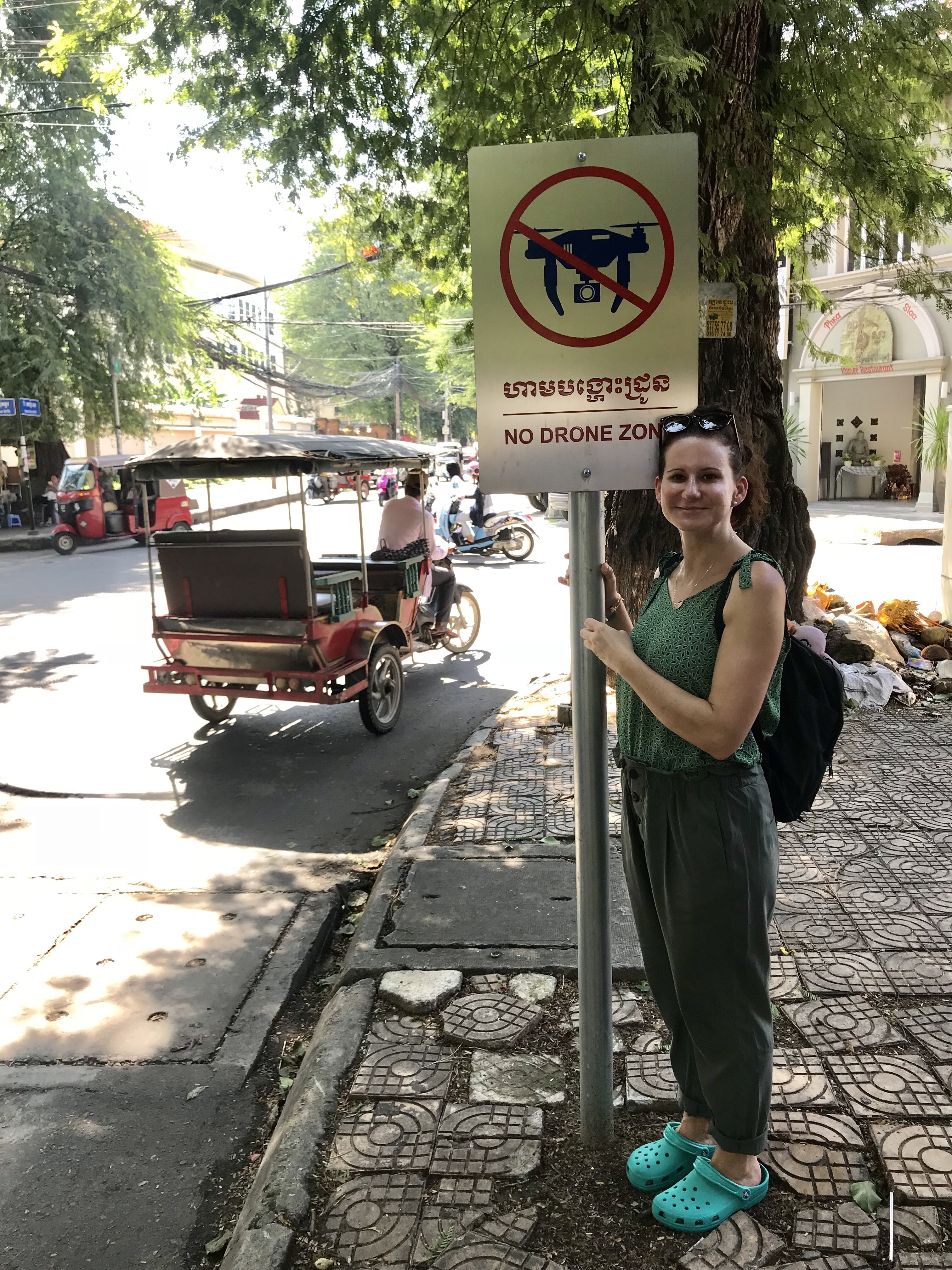 Rund um den Königspalast herrscht Dronenverbot. Das Schild darf man in Deutschland niemand zeigen, sonst werden bei uns bald auch alle Straßenzüge damit voll gepflastert. Naja, mehr Abstellmöglichkeiten für Fahrräder.