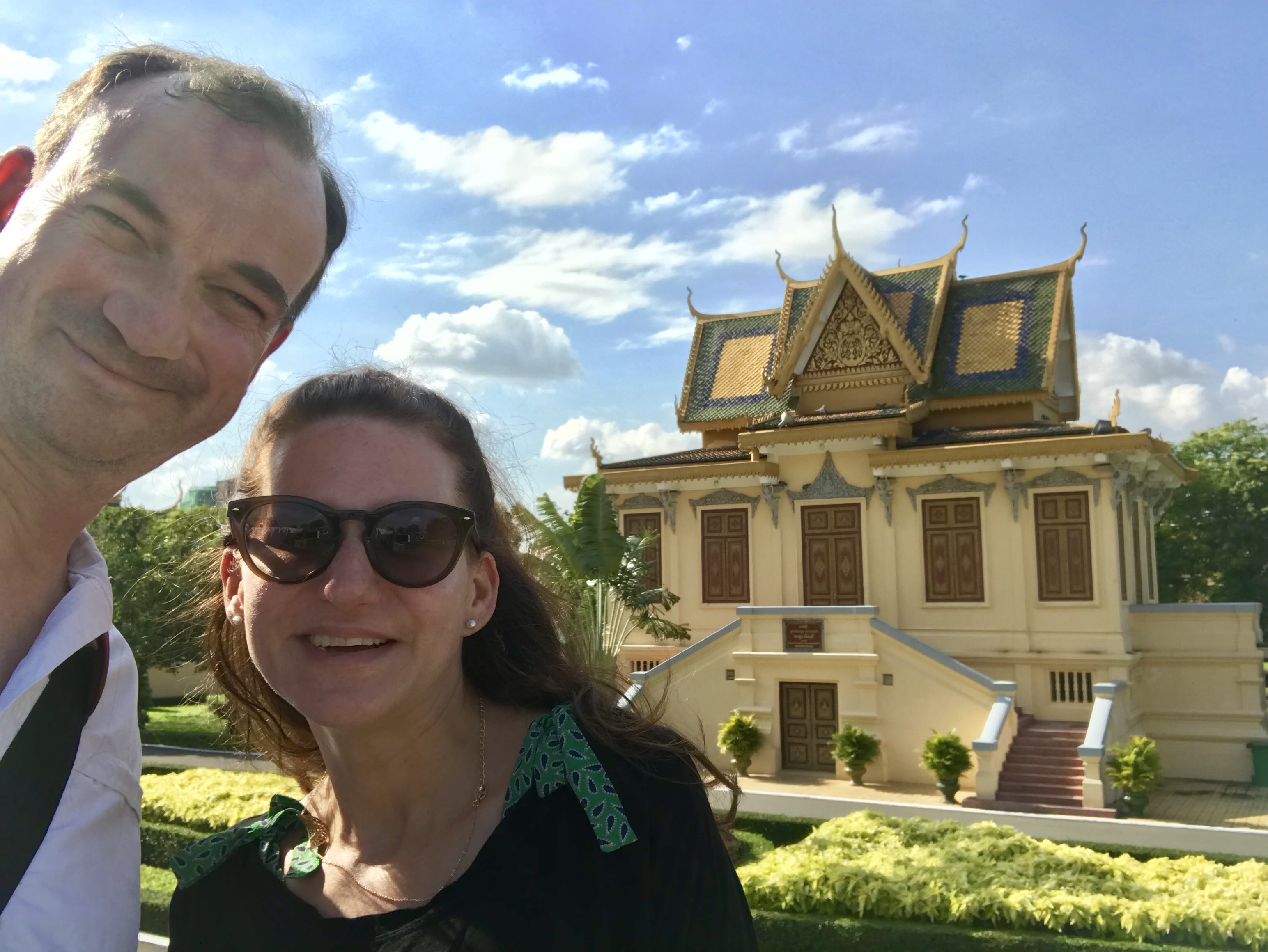 Es ist bereits weit nach 10am, als wir ausgeschlafen haben und uns drei Stockwerke weiter unten auf einen Kaffee begeben. So kann unser Spaziergang nun losgehen und wir umkreisen den Königspalast. Zahllose Tuk-Tuk Fahrer feilschen um unsere Gunst, doch der Palast ist nur 5 Minuten zu Fuß entfernt. Geöffnet wird aber erst um 2pm. Macht nix, es gibt ja noch andere Sehenswürdigkeiten. Zum Beispiel den lokalen LEGO Laden: