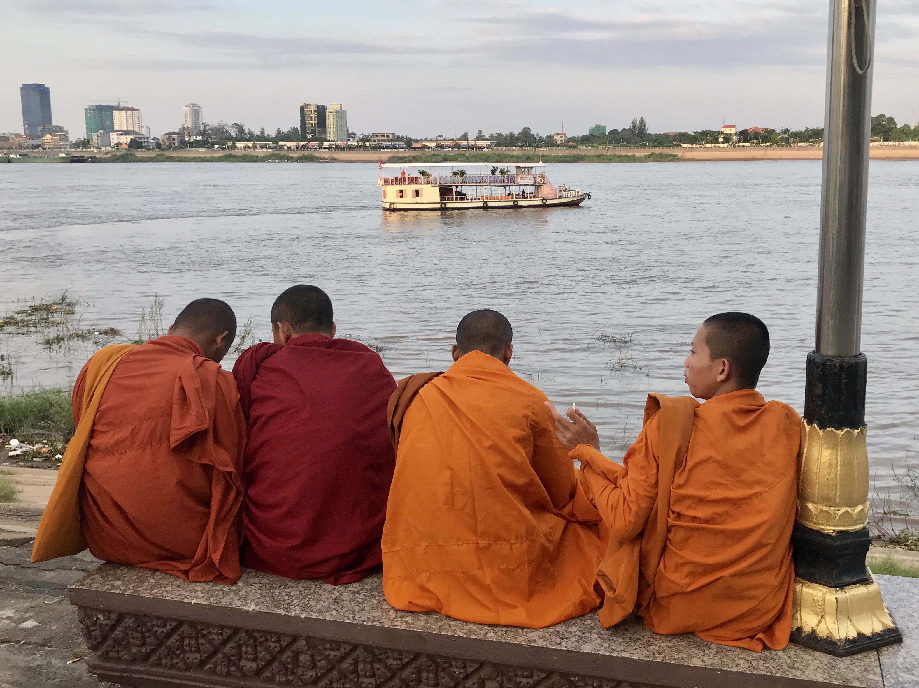 Wir laufen am Ufer des Tonle Saps hinauf mit Ziel Nachtmarkt. Die Uferpromenade ist recht frequentiert von Einheimischen, Touristen und Mönchen.