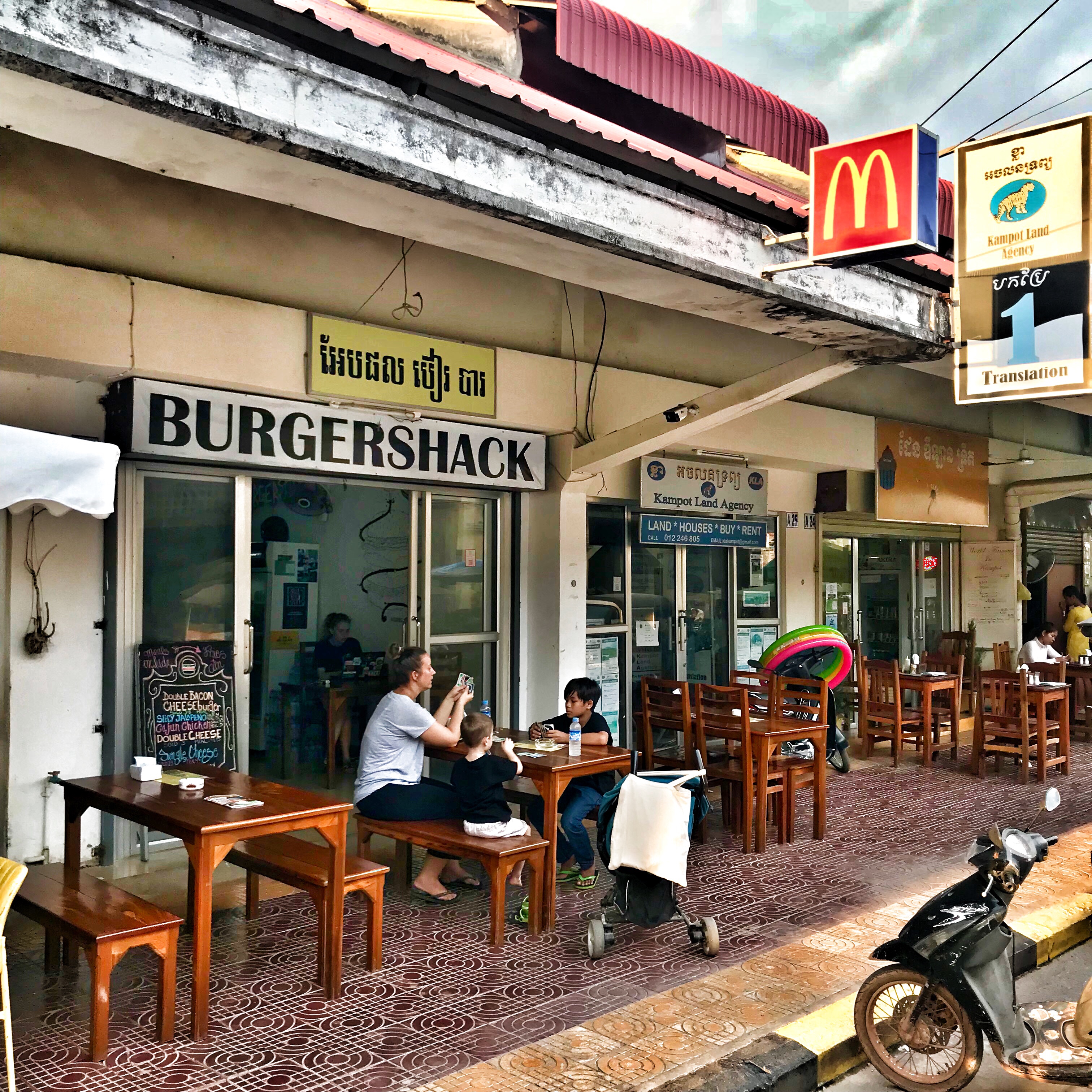 Zum Abendessen laufen wir über das lokale Water Festival die Promenade Richtung Ortsmitte. Der Kampot Pfeffer Burger ist ein Gedicht.