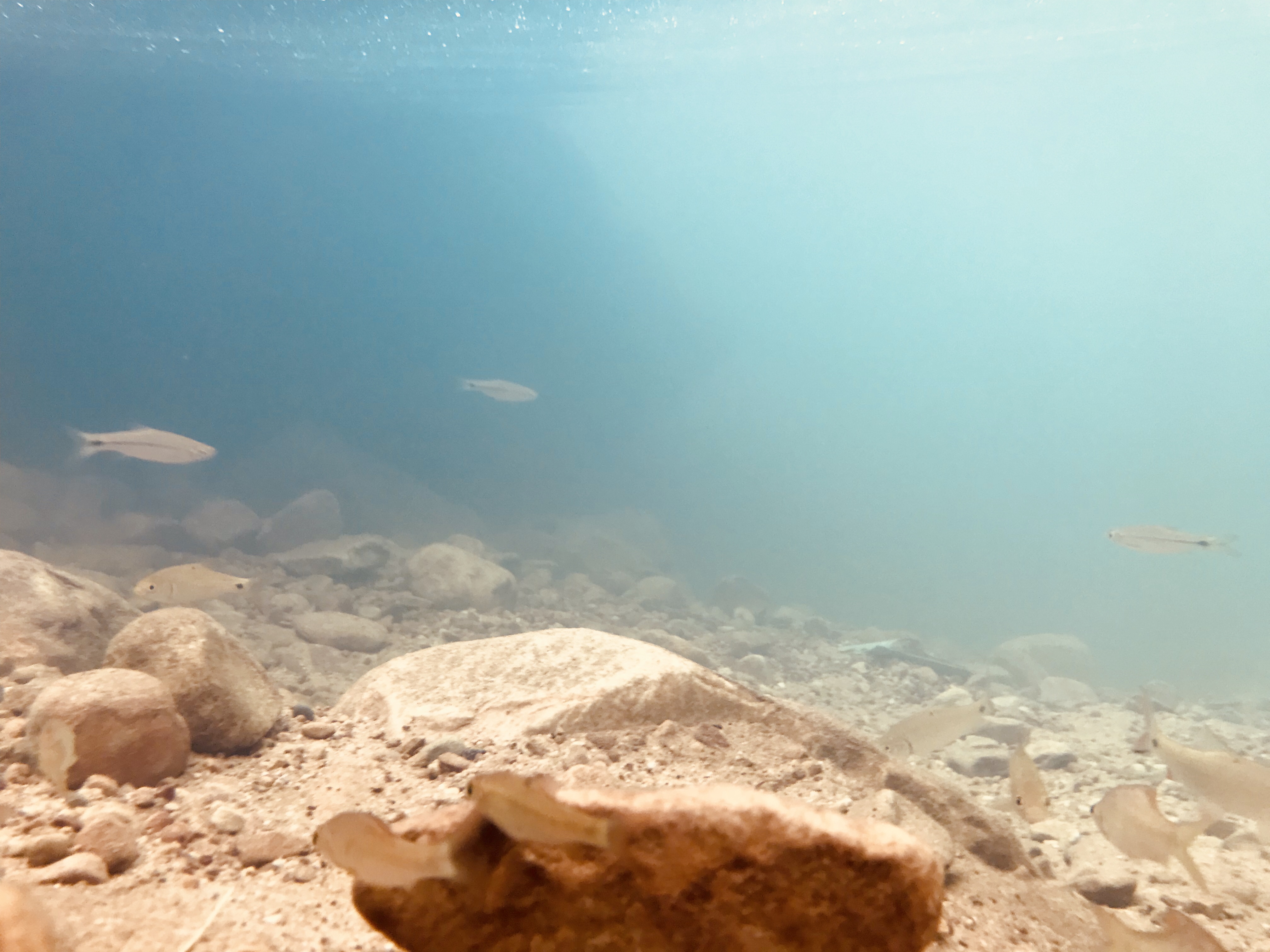 Im Wasser kann man kleine Fische beobachten, die gar nicht Camera scheu sind.
